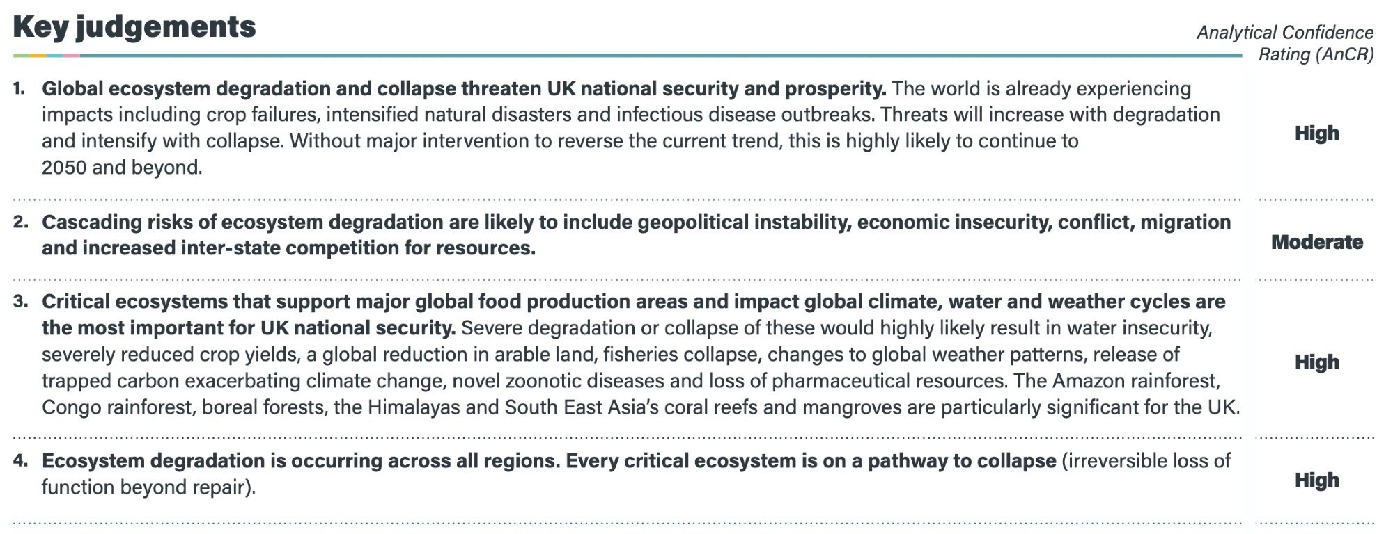 Findings include “every critical ecosystem is on a pathway to collapse (confidence rating HIGH)”