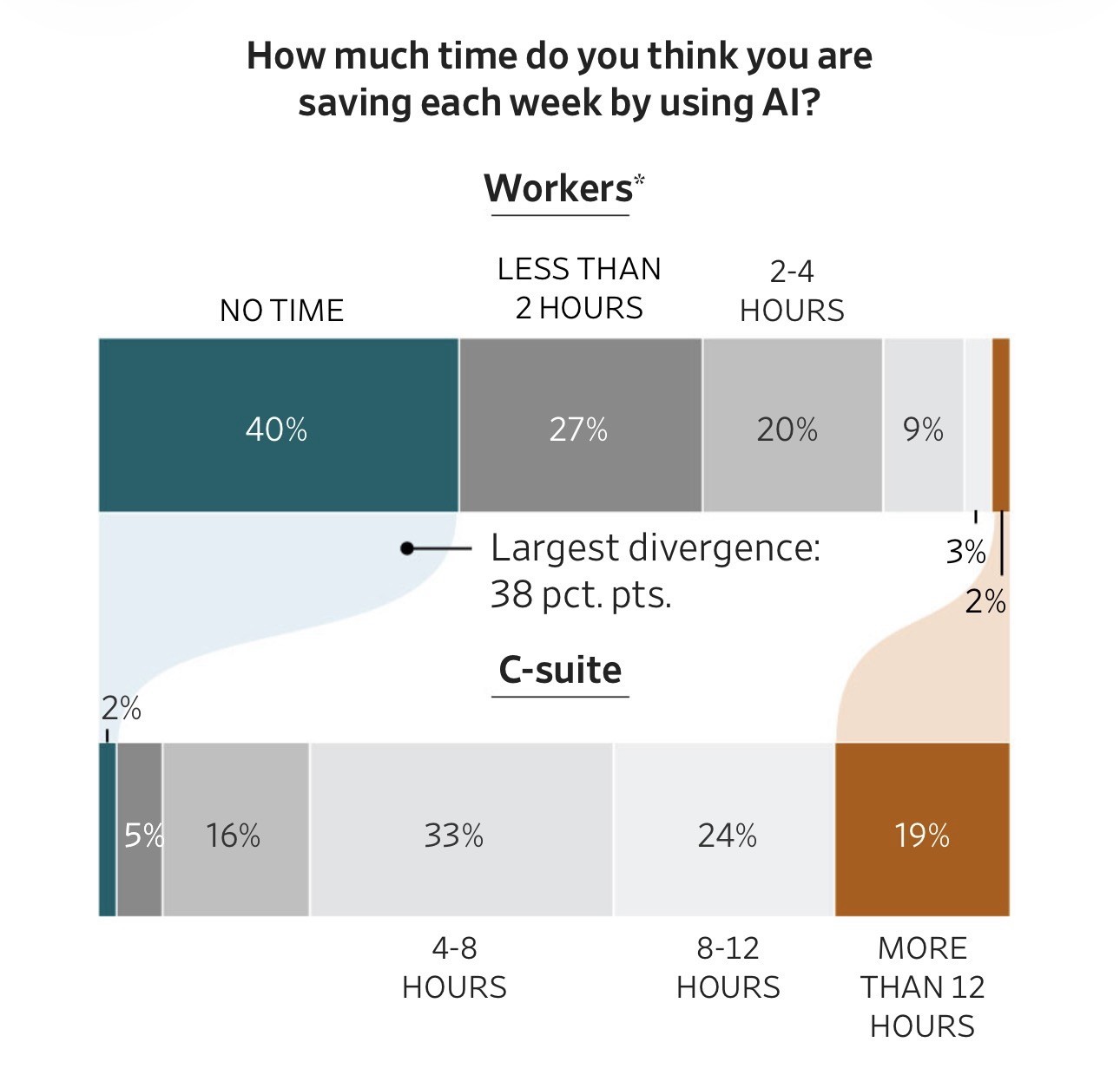 C suites think GenAI is saving loads of time vs the actual workers, who don’t.